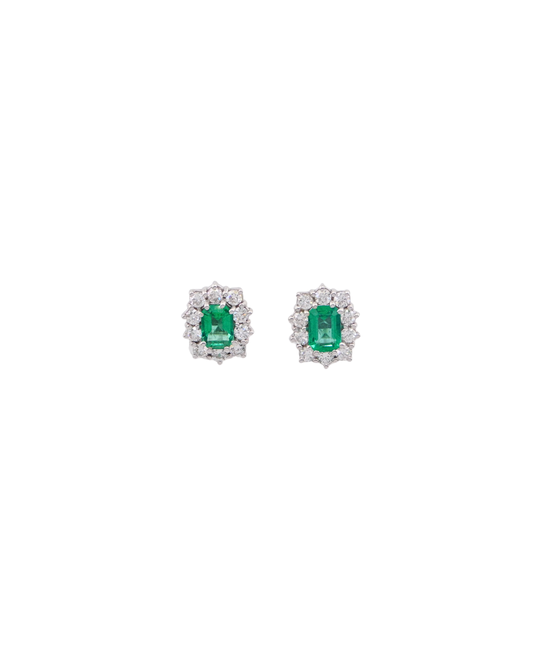 Orecchini in oro bianco 18Kt. Con smeraldi naturali taglio ottagonale e diamanti taglio brillante
