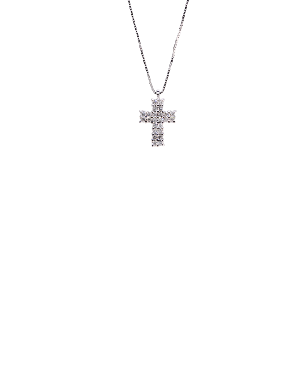 Collana con croce in oro bianco 18Kt. Con diamanti taglio brillante