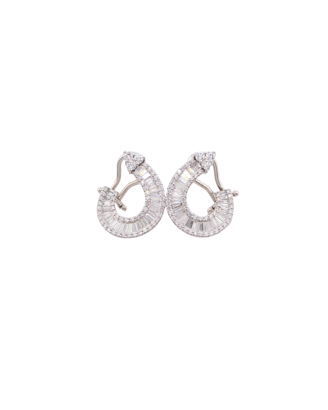 Orecchini in oro bianco 18Kt. Con diamanti taglio baguette e taglio brillante