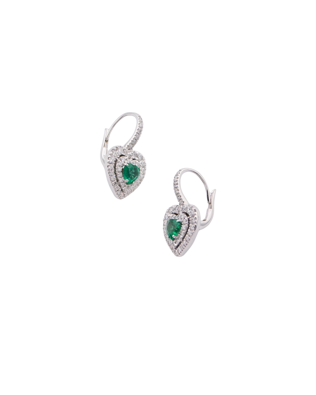 Orecchini in oro bianco 18Kt. Con smeraldi naturali taglio cuore e diamanti taglio brillante